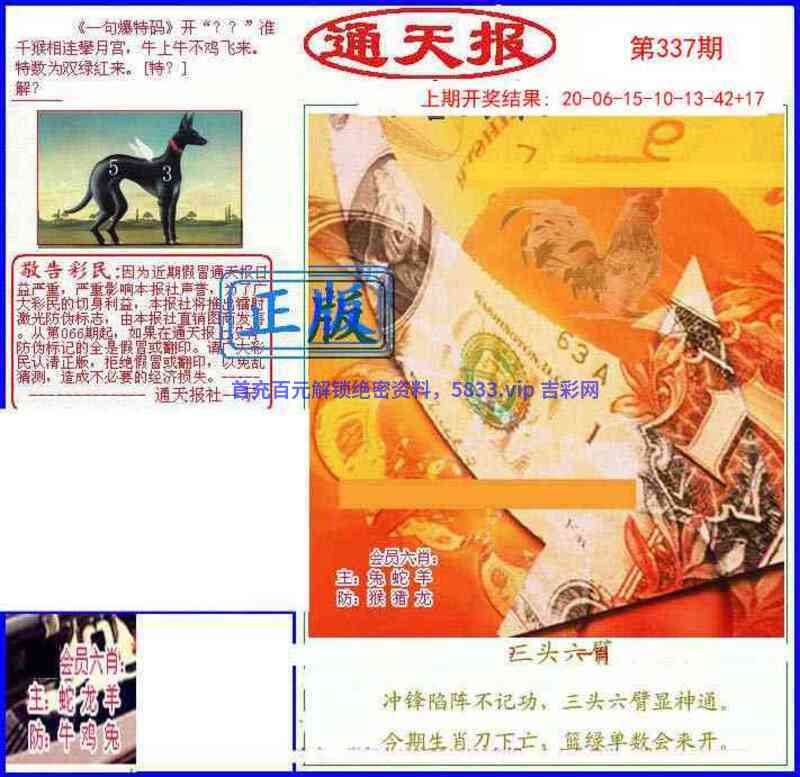 338期:六合三怪/内部平特诀/独家六合玄机/六合对诀/波色输尽光